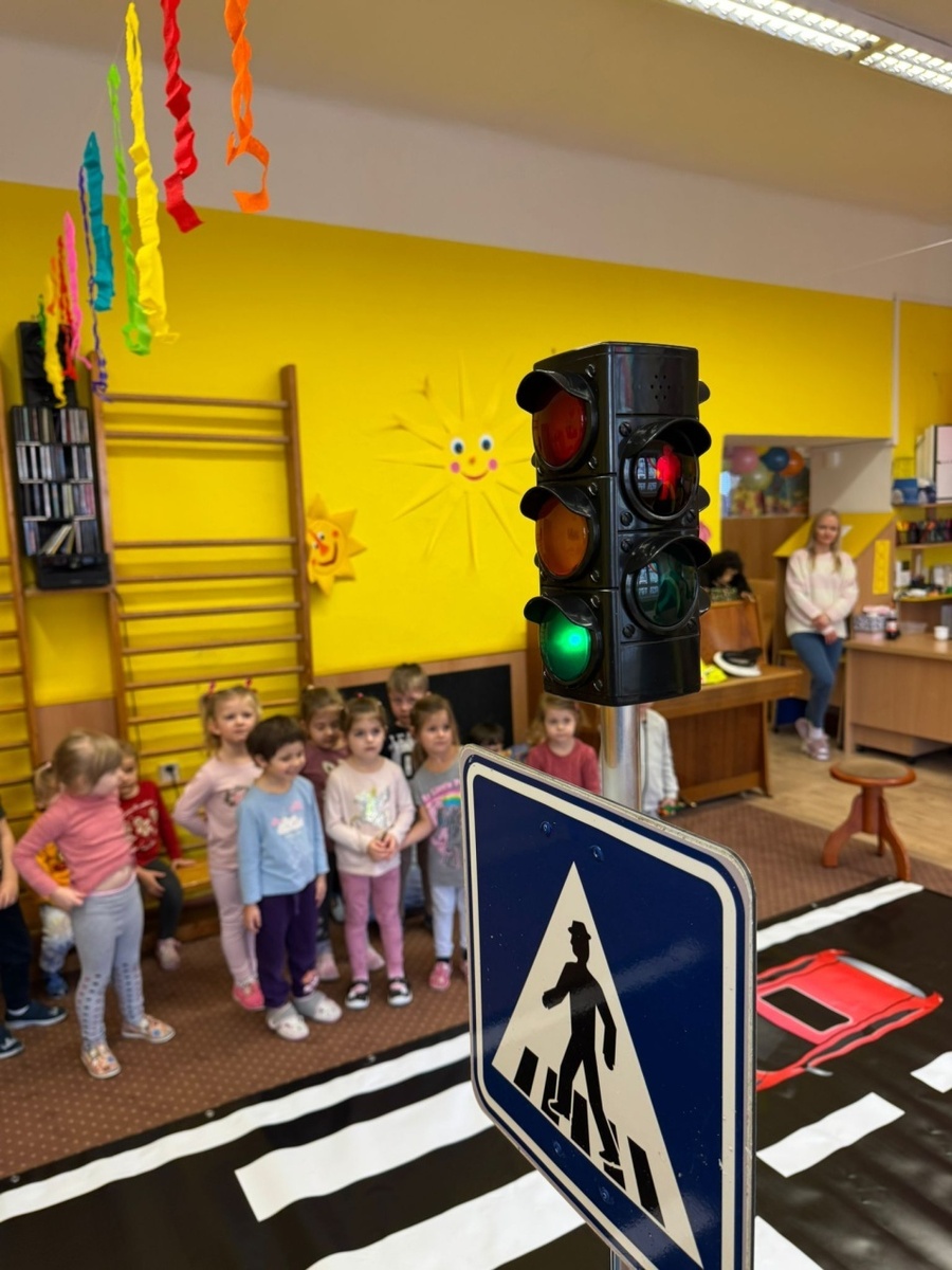 V mateřské škole si děti vyzkoušely a naučily bezpečně přejít silnici po přechodu.