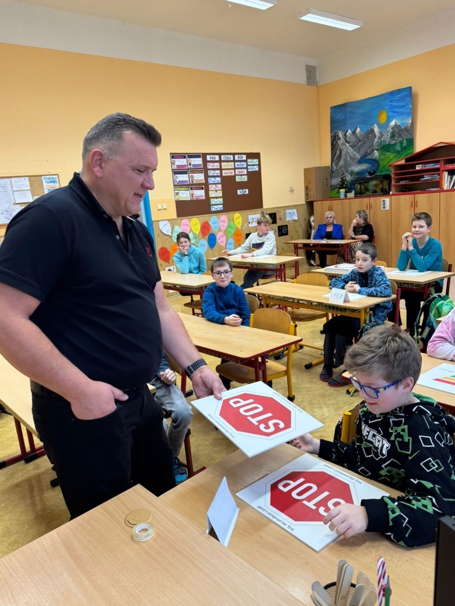 Ve čtvrtek 12. 2. 2026 přijeli do naší školy zástupci společnosti DOPRAVNÍ HŘIŠTĚ.EU s.r.o. a formou hry vedli výuku „Dopravní výchova hrou“ v mateřské školce a v pátých ročnících.