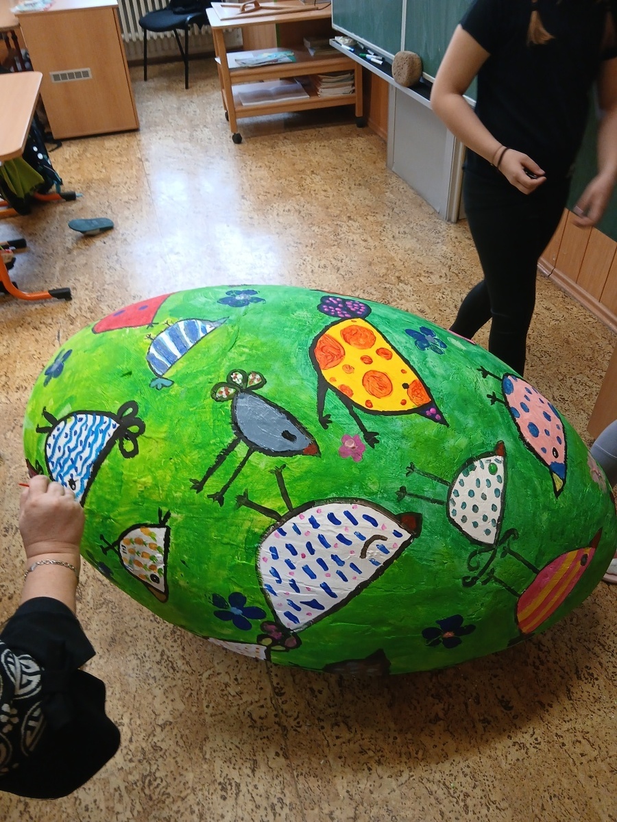Naši žáci se letos pustili do výzvy ve velkém stylu – a to doslova. Společnými silami výtvarně zpracovali metrovou kraslici, kterou nyní můžete obdivovat přímo v centru dění na velikonočních trzích na Horním náměstí v Olomouci.